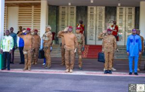 Le Président du Faso, Chef de l’État, le Capitaine Ibrahim TRAORÉ, a présidé ce lundi matin au palais de Koulouba, la cérémonie de montée des couleurs nationales et du drapeau de la Confédération des États du Sahel (AES) avec exécution, pour la première fois, de l’hymne de l’AES « Sahel benkan » (terme bamanakan qui signifie « l’entente du Sahel »).