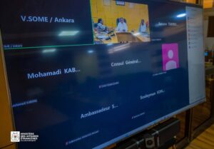Le ministre des Affaires étrangères, entouré de ses proches collaborateurs, a présidé dans l’après-midi du mardi 10 mars 2026, une rencontre par visioconférence avec les chefs des Missions diplomatiques et Postes consulaires du Burkina Faso installés dans les pays du Golfe.
