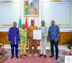 Le Président du Faso, Chef de l’État, le Capitaine Ibrahim TRAORÉ, a reçu ce vendredi en fin de matinée, le certificat d’homologation du Stade du 4-Août des mains du ministre des Sports, de la Jeunesse et de l’Emploi, M. Roland SOMDA.