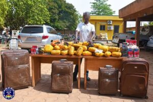 Grâce à la collaboration des populations, les investigations menées ont permis de saisir plusieurs objets dont des motos, une importante quantité de stupéfiants notamment 32,05 kg de cannabis; 43,62 g de cocaïne et 396 g de résine de cannabis, un lot de documents et du numéraire.